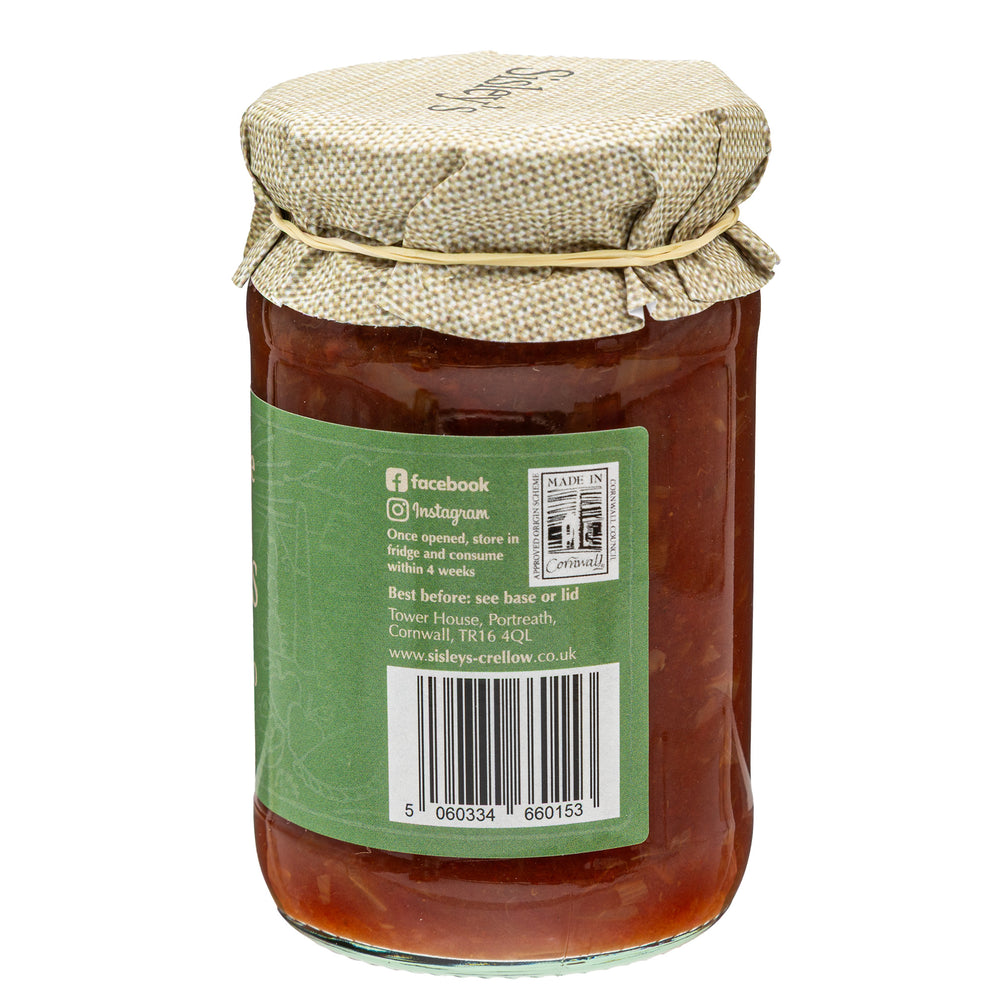 Made in Portreath on the north Cornish coast, this red/brown, loose textured chutney is made from a mix of tomatoes, onions, distilled malt vinegar, sugar, apple and spices. The combination makes an excellent accompaniment to cheese and ham.